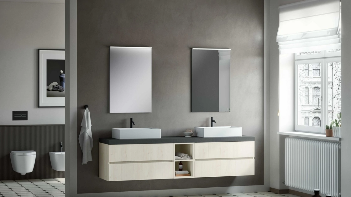 Grazie alla ricca collezione di soluzioni di Arredo Bagno moderno con mobili bagno sospesi di Arredoquattro, ogni spazio diventa gradevole e confortevole. Al giorno d'oggi il bagno non è più unicamente un ambiente di servizio, al contrario al suo arredo viene dedicata la medesima attenzione degli altri ambienti domestici. Il modello Mobile da Bagno sospeso Volo Evolution 04 di Arredoquattro in melaminico qui offerto connota il locale all'insegna di originalità e design, con molta stile. Ricca offerta di linee e tonalità per le composizioni di Arredo Bagno moderno con mobili bagno sospesi di Arredoquattro, soluzioni sempre votate alla massima personalizzazione. Facci visita per conoscere questo e i vari modelli di grande qualità del brand che presentiamo, ti garantiremo la totale contentezza a progetto ultimato.