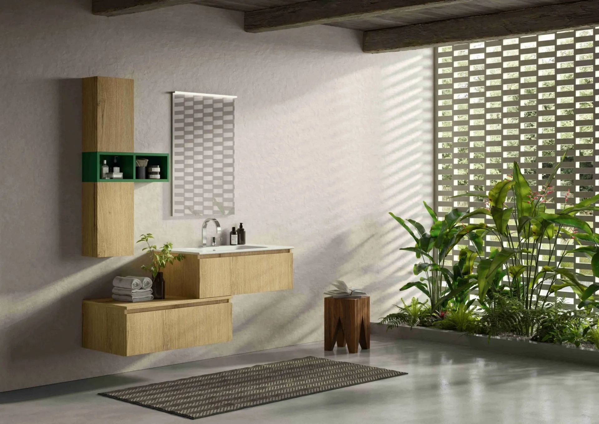Arredoquattro produce soluzioni per l’Arredo Bagno moderno con mobili bagno sospesi che uniscono linee ben studiate e tanta praticità, come questo interno chiede. Materiali tecnici e una ricca varietà cromatica assicurano una personalizzazione massima e materiali pregiati che resistano a diversificate sostanze o composti. In showroom potrai vedere dal vivo le più originali composizioni del rinomato marchio: ti aspettiamo per arredare insieme il tuo bagno. Con le proposte che proponiamo ti garantirai arredi fatti a regola d'arte e alla moda anche per il bagno, che va arredato con attenzione, con funzionalità e stile. Esteticamente apprezzabile e utile in ogni stanza da bagno, un modello in melaminico moderno come quello nella fotografia risolverà le tue esigenze abitative di ogni genere.