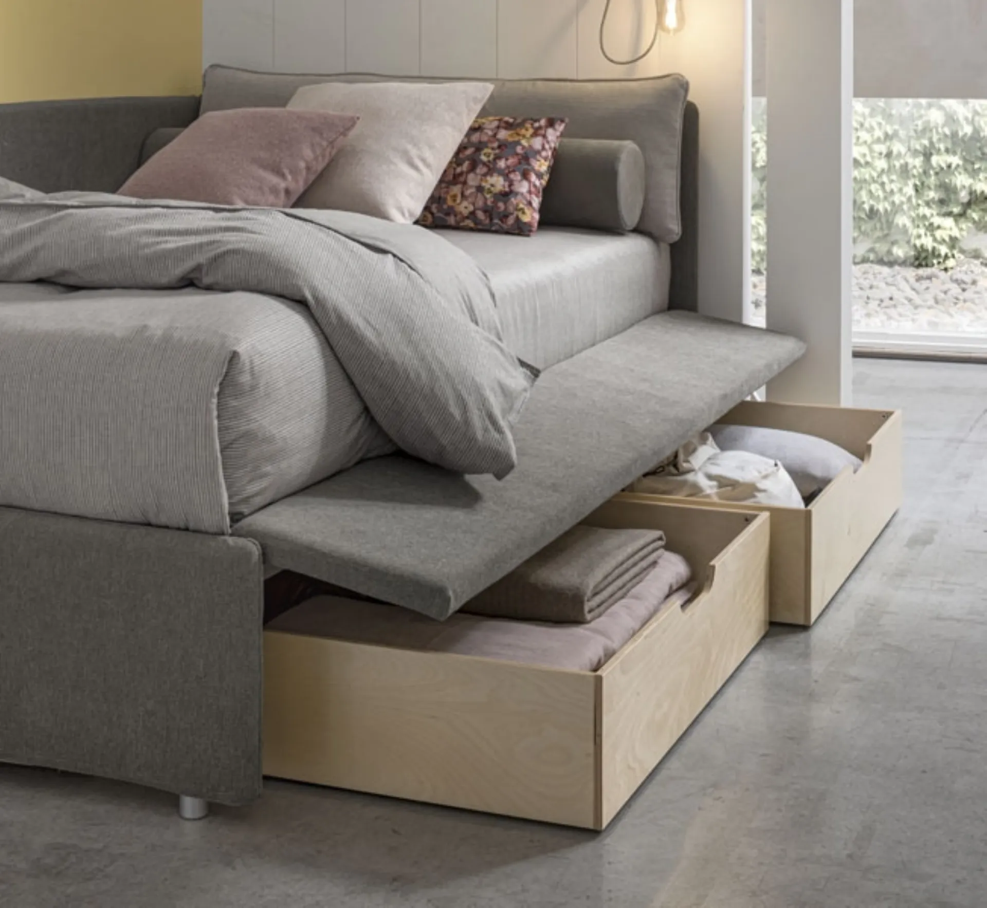 Desideri un letto singolo V&Nice per ultimare la cameretta? Ti presentiamo il Daybed Singolo con secondo letto estraibile o contenitore Joy Estraibile di V&Nice che è appartenente alla nostra serie di letti con letto estraibile del marchio. Una soluzione che rispetta le direttive di sicurezza indispensabili per organizzare il regno dei giovani. La cameretta dei ragazzini deve prevedere ogni pezzo di arredo per garantire uno spazio ideale per i bambini, in cui sono collocati i letti moderni come questo. Ottieni informazioni sul modello in tessuto nella fotografia: contattaci per qualsiasi informazione compilando il form in basso.