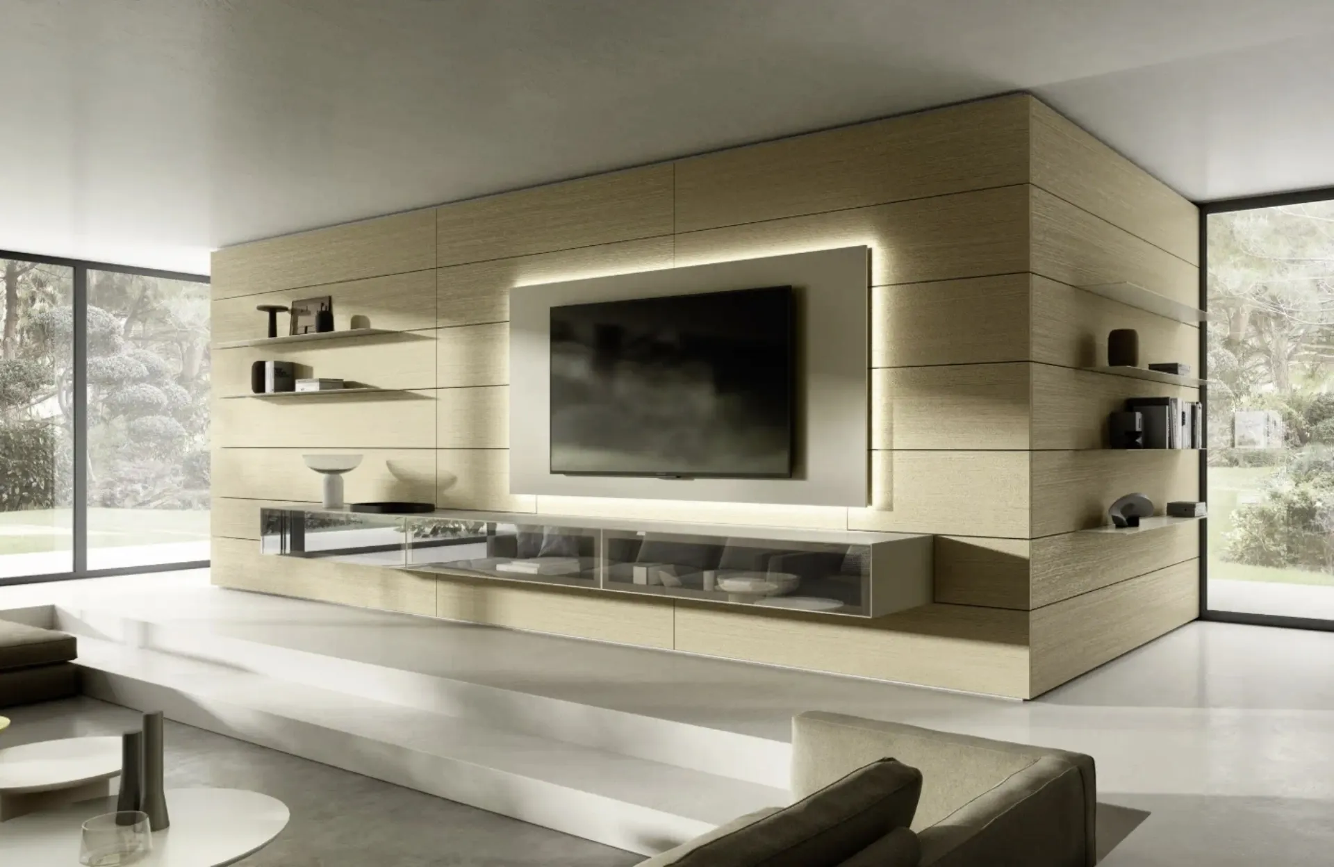 Le Pareti Attrezzate hanno conquistato un posto importante nella zona giorno delle nostre case: sono arredi plurifunzionali e salvaspazio sempre realizzabili su misura per te. Attraverso un gioco dinamico di accostamenti fra accessori a giorno o vani chiusi, le Pareti Attrezzate moderne arredano il living sfruttando bene ogni spazio. Per informazioni e preventivi sulla Parete Attrezzata Domino Boiserie 08 di Sangiacomo nella fotografia contattaci! Il modello proposto è realizzato in vetro, ma grazie ad una grande varietà di finiture, cromie e conformazioni, potrà adattarsi a stili di ogni tipo.